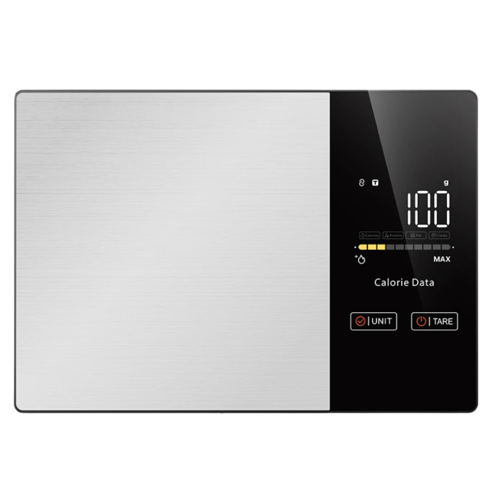 Die TrackBite-Waage misst auf 1 g genau, damit du deine Kalorien und Makros absolut präzise berechnen kannst.